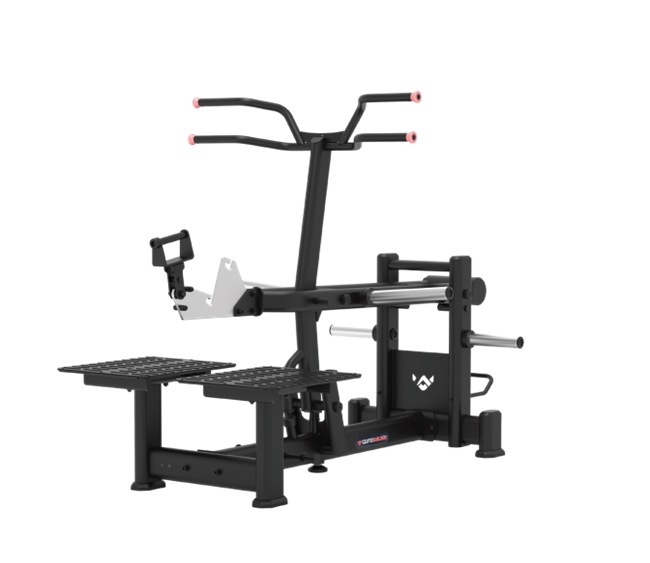 腰带深蹲 / 登台阶多功能训练器将负重压力从背部转移至臀部与下肢核心,使训练更安全、更集中,是未来健身房“臀腿训练区”的明星设备。其紧凑结构与多功能属性,极大提升了空间利用率与使用体验。