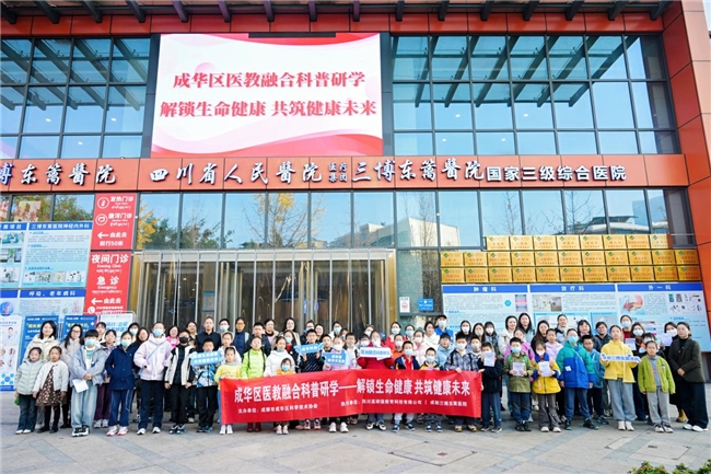 2025年12月7日,冬日暖阳轻柔地洒在成都三博东篱医院的每一寸土地上。由成都市成华区科学技术协会主办,四川高研值教育科技有限公司与成都三博东篱医院联合执行的“解锁生命奥秘,共筑健康未来”科普研学活动在此圆满举行。作为四川省“天府科普(研学)游”发展方案发布后的成华区社区研学线路首场落地活动,此次研学以“沉浸式医学体验”为核心,吸引了成华区50组4 - 6年级学生及家长踊跃参与。这不仅是一场兼具科学性与趣味性的科普盛宴,更是成华区打造社区科普典范、推动医教融合研学发展的生动实践,让居民在家门口就能深入学习丰富的专业知识。